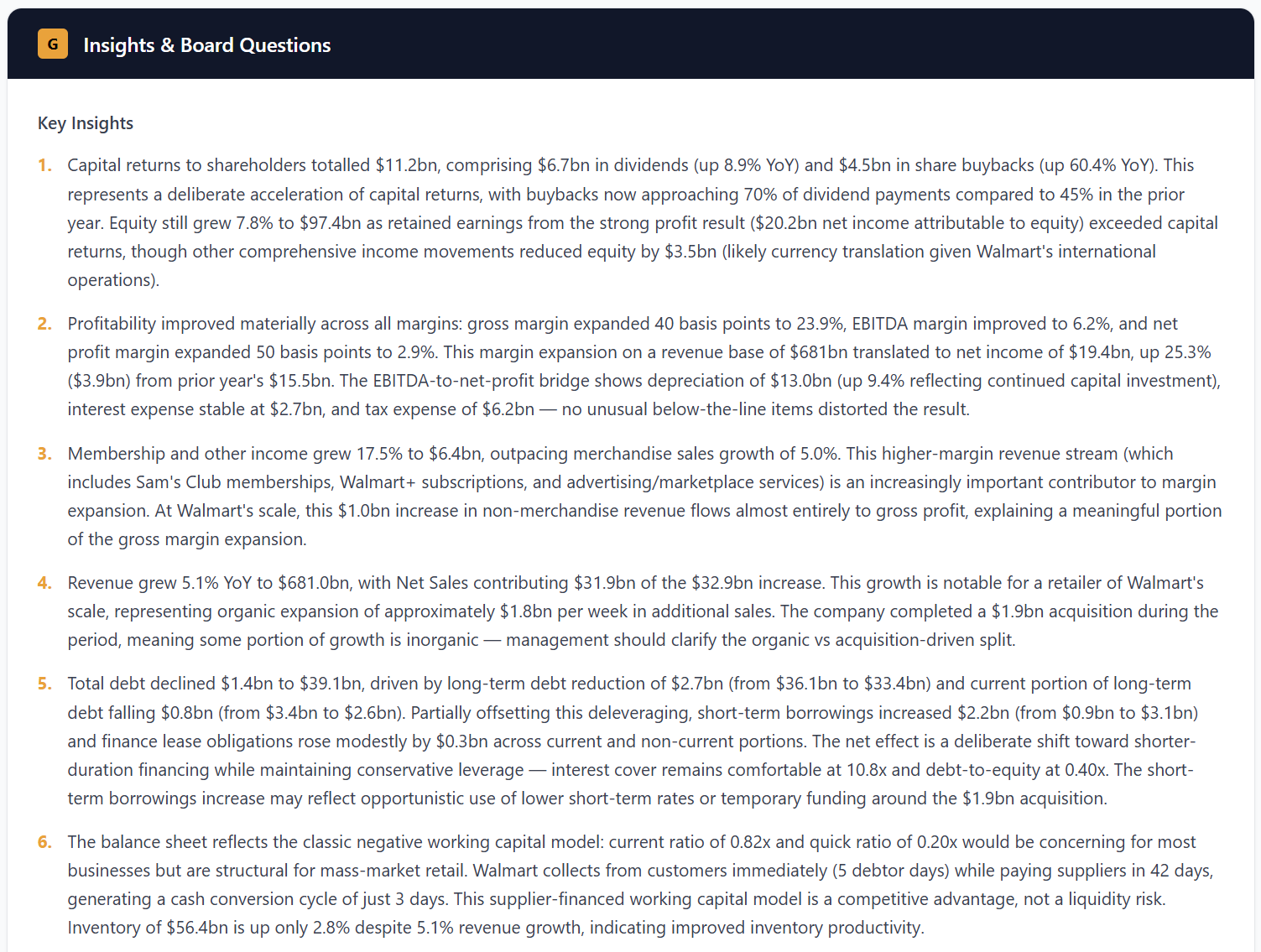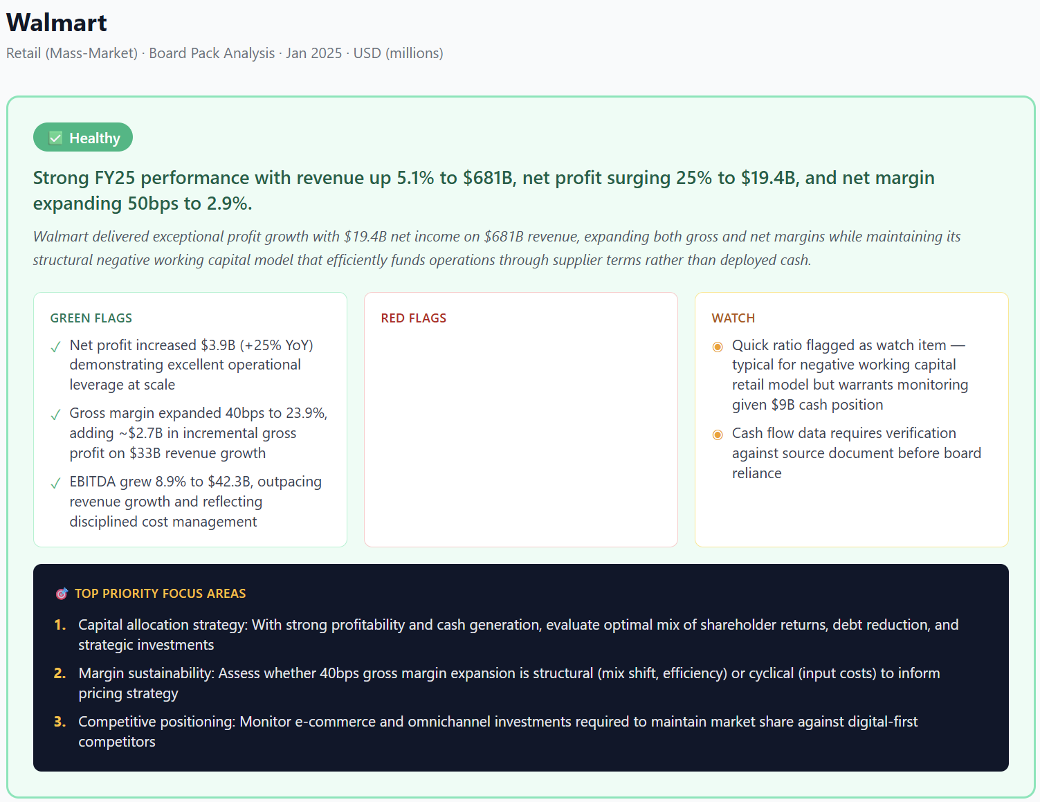 Generated within minutes from Walmart's 2025 Annual Report. No manual work. No spreadsheets.