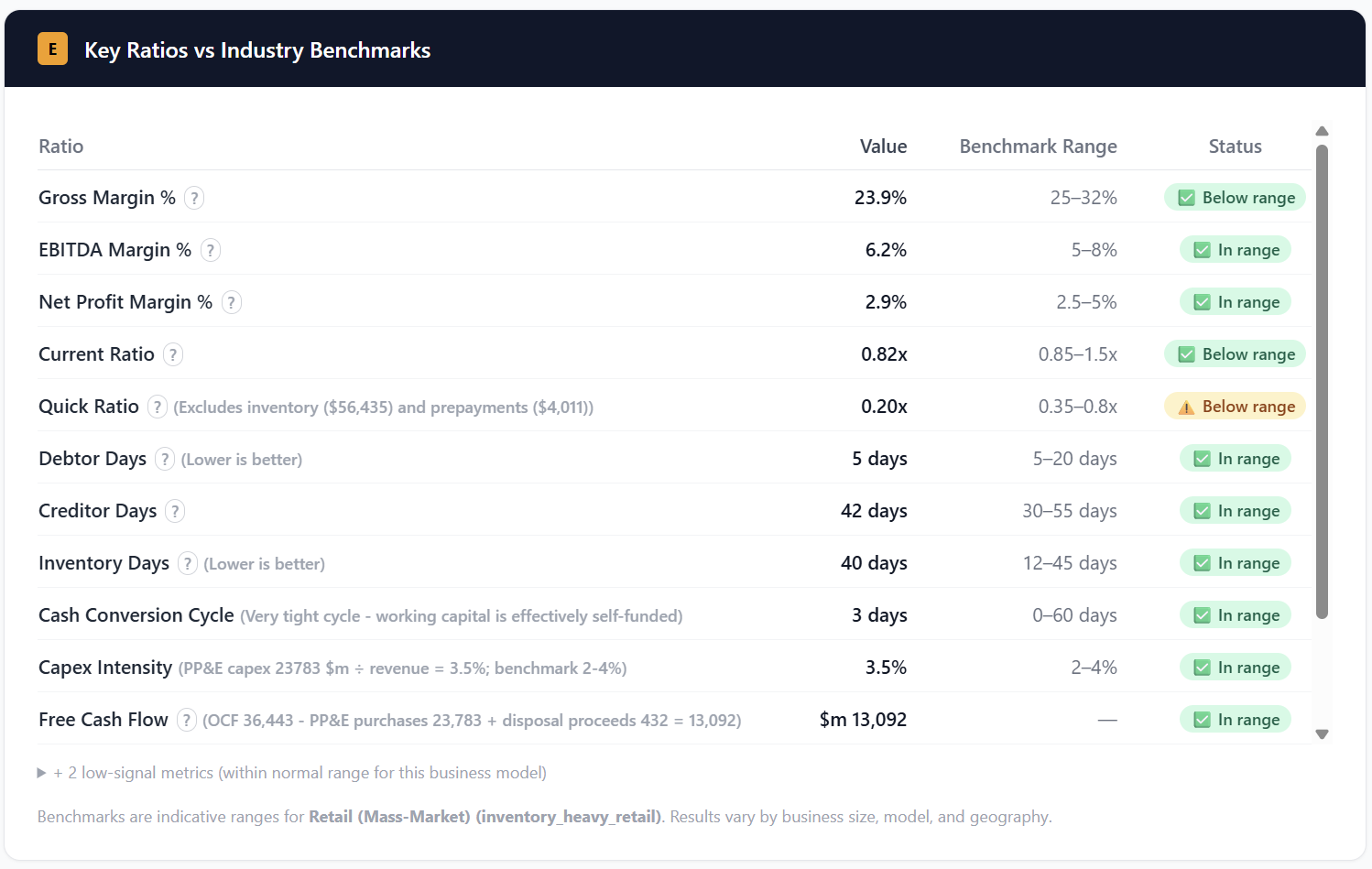 Key Ratios vs Industry Benchmarks